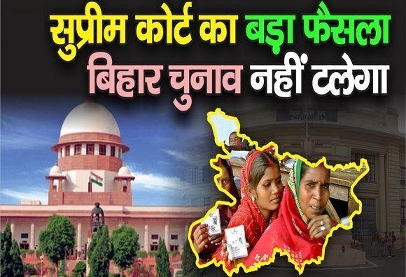 पटना/नई दिल्ली,(ARLive news)। कोरोना काल में बिहार विधानसभा चुनाव कराने को लेकर सुप्रीम कोर्ट ने भी अनुमति दे दी है। देश की सबसे बड़ी अदालत ने कहा कि कोरोना के चलते चुनाव को नहीं टाला जा सकता है। सुप्रीम कोर्ट ने इस साल के आखिरी महीनों में संभावित बिहार विधानसभा के चुनावों को टालने की मांग वाली याचिका को खारिज कर दिया।