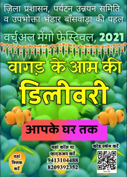 कलेक्टर अंकित कुमार ने बताया कि लाॅकडाउन के चलते हर बार जैसा मैंगो फेस्टिवल आयोजित नहीं हो पा रहा था। इस पर हमने मैंगो फेस्टिवल को अलग अंदाज में मनाने का निर्णय किया। जिला पर्यटन उन्नयन समिति एवं सहकारी उपभोक्ता भंडार बांसवाड़ा के तत्वावधान में आमों की होम डिलीवरी की कार्ययोजना तैयार की। आज शनिवार को श्री एकलिंगनाथ प्राथमिक सहकारी उपभोक्ता भंडार एवं न्यू राज फार्म के माध्यम से आम घर-घर पहुंचाने के लिए वाहनों को हरी झण्डी दिखाकर रवाना किया। इससे आम उत्पादक को नुकसान नहीं होगा और आम खरीद के लिए बाजार में उमड़ने वाली भीड़ भी नियंत्रित हो सकेगी।