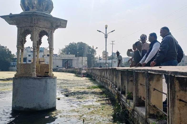 पूर्व सांसद मीणा मंगलवार को अंदरूनी शहर में कुछ कार्यकर्ताओं के घर शोक जताने गए थे। इसी दौरान वापस लौटते समय उनकी नजर कुम्हारिया तालाब में पसरी जलीय घास, जलकुंभी पर पड़ी मीणा ने अपनी कार रूकवायी और हालात देखे।