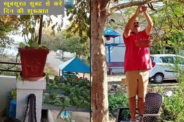 संभागीय आयुक्त कार्यालय के सामने सरकारी आवास में निवास कर रहे पीडब्ल्यूडी के एसई अशोक शर्मा भी आवास परिसर में पक्षियों के लिए परिंडें और दाने की नियमित व्यवस्था की सेवा कर रहे है। शर्मा और उनके परिवार के सदस्यों ने मेहनत कर यहां एक छोटा गार्डन भी विकसित किया है। इसके चलते यहां सुबह शाम पक्षियों की ऐसी चहचहाहट सुनाई देती है मानों यह कोई सरकारी आवास नहीं होकर कोई मिनी गार्डन हो।