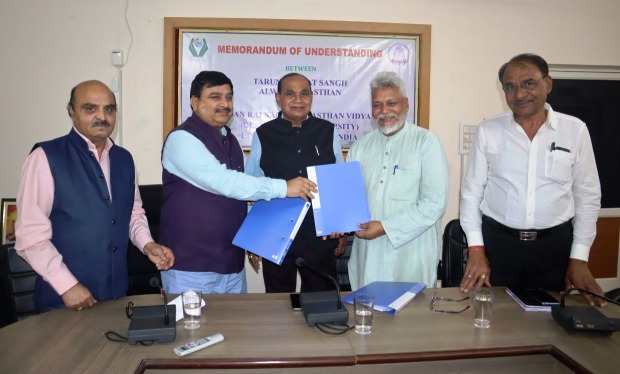 उदयपुर(एआर लाइव न्यूज)।पर्यावरण संरक्षण एवं जल, जंगल, जमीन को लेकर आमजन को जागरूक करने के उद्देश्य से जनार्दनराय नागर राजस्थान विद्यापीठ डीम्ड टू बी विश्वविद्यालय एवं तरूण भारत संघ के बीच एमओयू हुआ।