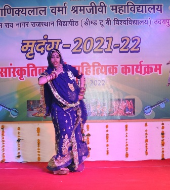 उदयपुर(एआर लाइव न्यूज)। माणिक्यलाल वर्मा श्रमजीवी महाविद्यालय के दो दिवसीय सांस्कृतिक कार्यक्रम मृदंग का शुक्रवार को समापन हुआ।