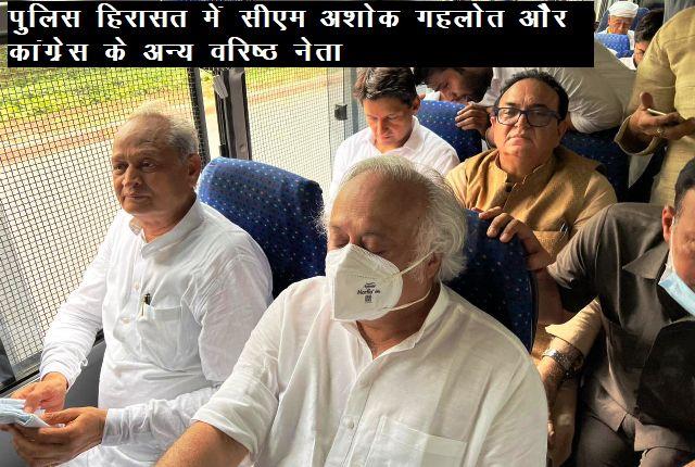 नई दिल्ली,(एआर लाइव न्यूज)। प्रवर्तन निदेशालय (ED) द्वारा कांग्रेस नेता राहुल गांधी को समन भेजकर बुलाने और पूछताछ करने के विरोध में सोमवार को ईडी कार्यालय जा रहे कांग्रेस नेताओं को दिल्ली पुलिस ने हिरासत में लिया है। इस दौरान दिल्ली पुलिस ने राजस्थान के मुख्यमंत्री अशोक गहलोत को भी अन्य वरिष्ठ नेताओं के साथ हिरासत में लिया है और पुलिस की बस में बैठाकर ले जा रहे हैं। मुख्यमंत्री अशोक गहलोत ने ट्विट कर इसकी जानकारी दी है।