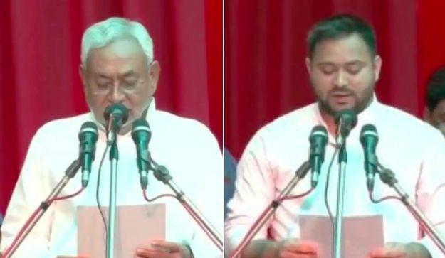 पटना,(एआर लाइव न्यूज)। बिहार में नीतीश कुमार के नेतृत्व में बुधवार को महागठबंधन की सरकार बन गयी। नीतीश कुमार ने मुख्यमंत्री और तेजस्वी ने उपमुख्यमंत्री पद की शपथ ली। राज्यपाल फागू चौहान ने उन्हें पद और गोपनीयता की शपथ दिलाई। नीतीश कुमार ने बिहार के मुख्यमंत्री पद की आठवीं बार शपथ ली है, वहीं तेजस्वी दूसरी बार उपमुख्यमंत्री बने हैं।