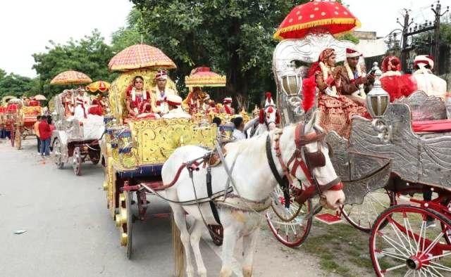 उदयपुर,(एआर लाइव न्यूज)। नारायण सेवा संस्थान की ओर से हो रहे निशुल्क दिव्यांग एवं निर्धन सामूहिक विवाह समारोह की आज रविवार से शुरूआत हुई। जहां दिन में गीत-अंताक्षरी के बीच 51 दुल्हा-दुल्हनों की एक साथ हल्दी, मेहंदी की रस्में हुईं, तो शाम को दुल्हा-दुल्हन की भव्य बिंदोली निकली। 51 वर-वधु के जोड़े टाउन हॉल में बग्गियों पर सवार हुए। बिंदोली जब शहर भ्रमण पर निकली तो एक साथ इतनी बग्गियों में जोड़ों को देखकर आम लोग भी हर्षोल्लासित हो उठे।
