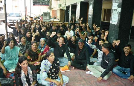 मांगों को लेकर ग्राम विकास अधिकारी बैठे धरने पर