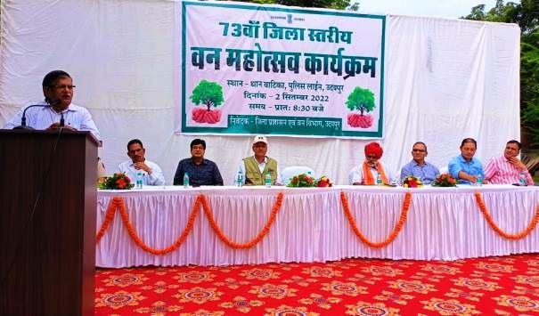 कलक्टर मीणा ने कहा कि राष्ट्रीय वन नीति अनुसार देश के एक-तिहाई भू.भाग वनों से आच्छादित होने चाहिये, वहीं उदयपुर जिले के भू-भाग का लगभग 30 प्रतिशत भाग वन क्षेत्र है। उन्होंने यह भी बताया कि राष्ट्रीय राजमार्ग, खेलगांव और अन्य सार्वजनिक स्थानों पर पलाश, अमलतास आदि स्थानीय प्रजातियों के पौधों के रोपण पर फोकस किया गया है।
