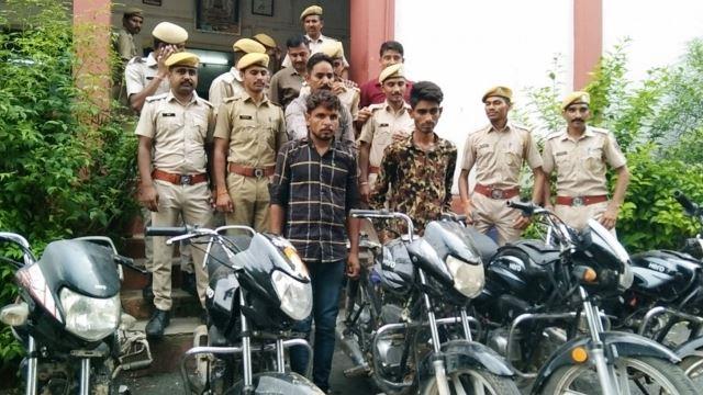 एसपी विकास शर्मा ने बताया कि बाइक चोर गिरोह के भादसोड़ा चित्तौड़गढ़ निवासी भैरूलाल पुत्र शंकरलाल जाट और कमलेश पुत्र प्रभुलाल जाट को गिरफ्तार किया है। आरोपियों ने 7 बाइक चोरी करना कबूला है, जिन्हें आरोपियों की निशानदेही पर बरामद कर लिया गया है। वहीं दूसरे गिरोह के राश्मी चित्तौड़गढ़ निवासी नारायण लाल जाट पुत्र रामलाल और योगेश गर्ग पुत्र चुन्नीलाल को गिरफ्तार किया है। आरोपियों ने बीते दिनों कुम्हारों के भट्टे से पिकअप चोरी की थी, जो आरोपियों की निशानदेही पर बरामद कर ली गयी है। कार्रवाई थानाधिकारी हनवन्त सिंह सौदा के नेतृत्व में पुलिस टीम ने की है।