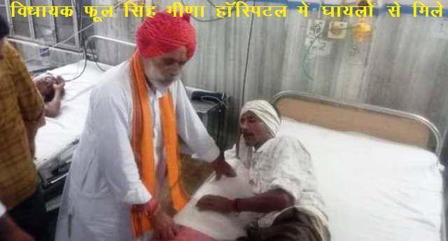 हॉस्पिटल में विधायक फूल सिंह मीणा ने घायलों की कुशलक्षेम पूछी। इस दौरान घायलों ने बताया कि कुछ लोग मकान निर्माण का काम चल रहा था, वहां काम कर रहे थे, वहीं दो-तीन लोग बकरी चरा रहे थे। अचानक तेज बारिश शुरू होने से बचने के लिए सभी पास ही एक कच्चे मकान पर पड़े तिरपाल के नीचे खड़े हो गए। तभी आकाशीय बिजली उस कच्चे मकान पर गिरी, जहां सभी खड़े थे।