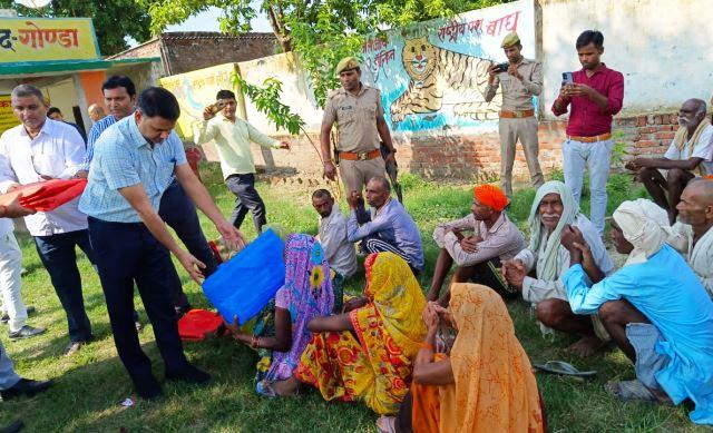 विकास कुमार सोनी, गोण्डा,(एआर लाइव न्यूज)। गोंडा कलेक्टर डॉ उज्जवल कुमार ने मंगलवार को तरबगंज तहसील के बाढ़ प्रभावित क्षेत्रों गढ़ी और जबरनगर गांव का दौरा कर वहां की वस्तुस्थिति का जायजा लिया। उन्होंने ग्रामीणों से मुलाकात कर बाढ़ से होने वाली समस्याओं की जानकारी ली और राहत सामग्री तिरपाल, बिस्किट, केला सहित अन्य खाद्य सामग्री का वितरण किया।