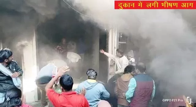 उदयपुर/गोगुंदा,गोपाल लोढ़ा(एआर लाइव न्यूज)। उदयपुर जिले के गोगुंदा, कस्बे में मुख्य बाजार स्थित कपड़े की दुकान बजरंग क्लोथ स्टोर में शुक्रवार सुबह अचानक भीषण आग लग गयी (fire incident in udaipur)। कुछ ही देर में आग ने विकराल रूप धारण कर लिया। दुकान से धुआं निकलते देख क्षेत्रवासियों ने दुकान मालिक, पुलिस और दमकल को सूचना दी। आग इतनी भीषण थी कि कस्बे में दूर-दूर तक धुआं दिखाई दे रहा था।