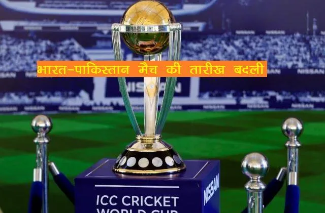 नई दिल्ली,(एआर लाइव न्यूज)। वनडे क्रिकेट वर्ल्ड कप-2023 में भारत-पाकिस्तान के बीच होने वाले मैच की तारीख बदल गयी है। 15 अक्टूबर को होने वाला मैच, अब एक दिन पहले 14 अक्टूबर को होगा। न्यूज एजेंसी के अनुसार इस तारीख के लिए लिए पाकिस्तान क्रिकेट बोर्ड भी तैयार हो गया है। यह बदलाव सुरक्षा की दृष्टि से किया गया है, क्यों कि 15 अक्टूबर से नवरात्री का त्योहार शुरू हो रहा है, जिसके चलते अहमदाबाद सहित गुजरात में बड़ी संख्या में पर्यटक आते हैं।