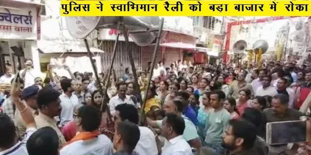 स्वाभिमान रैली टाउनहॉल से रवाना होकर बड़ा बाजार क्षेत्र में पहुंची तो यहां पुलिस अधिकारियों ने आचार संहिता का हवाला देते हुए रैली को रोक दिया। काफी देर तक यहां गहमा गहमी का माहौल बना रहा। इस दौरान पुलिस ने सिंघवी समर्थकों को आगे बढ़ने से रोकने के लिए हल्का बल प्रयोग भी किया। पुलिस ने आचार संहिता का हवाला देते हुए स्वाभिमान रैली को बड़ा बाजार में रोक दिया, लेकिन यहां सवाल यह उठता है कि रैली टाउनहॉल से रवाना हुई तब पुलिस कहां थी। टाउनहॉल से रवाना होकर रैली सूरजपोल, अस्थल तिराहा, मुखर्जी चौक होते हुए बड़ा बाजार पहुंच गई। तब जाकर पुलिस को आचार संहिता याद आयी।