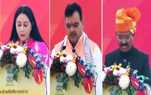 जयपुर,(एआर लाइव न्यूज)। राजस्थान के नए मुख्यमंत्री के रूप में भजनलाल शर्मा ने शुक्रवार को जयपुर में शपथ ली (rajasthan cm oath ceremony)। राज्यपाल कलराज मिश्र ने दीया कुमारी और प्रेमचंद बैरवा को उप मुख्यमंत्री के रूप में पद एवं गोपनीयता की शपथ दिलाई।