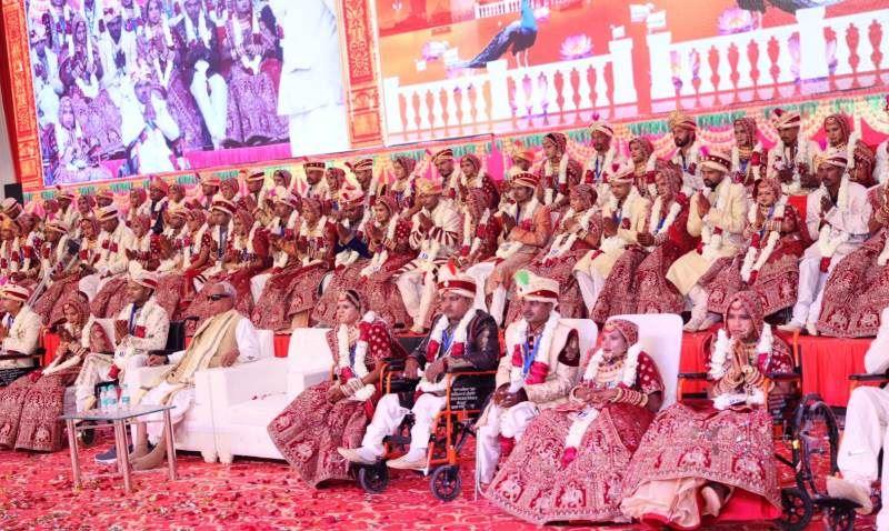 उदयपुर,(एआर लाइव न्यूज)। नारायण सेवा संस्थान की ओर से आयोजित 41वें निःशुल्क दिव्यांग व निर्धन सामूहिक विवाह समारोह में रविवार को 51 जोड़े सात वचनों को लेकर जनम-जनम के बंधन में बंध गए। सुबह शुभ मुहूर्त में दूल्हों ने क्रमवार परम्परागत तोरण की रस्म का निर्वाह किया। (narayan seva sansthan mass wedding ceremony)