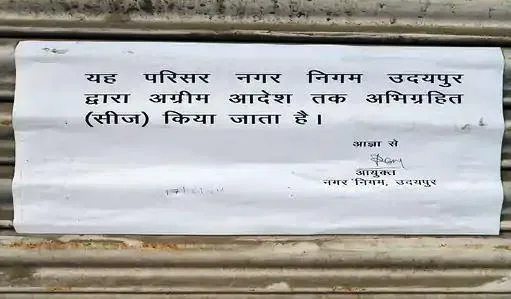 उदयपुर,(एआर लाइव न्यूज)। उदयपुर नगर निगम (udaipur nagar nigam) ने आज शनिवार सुबह देहलीगेट स्थित 41 दुकानें सीज कर दी। पुलिस बल के साथ सुबह-सुबह नगर निगम के अधिकारी देहलीगेट पहुंच गए और एक-एक कर सभी दुकानों पर सीज करने का नोटिस चस्पा कर दिया। सूचना मिलते ही व्यापारियों में हड़कंप मच गया।