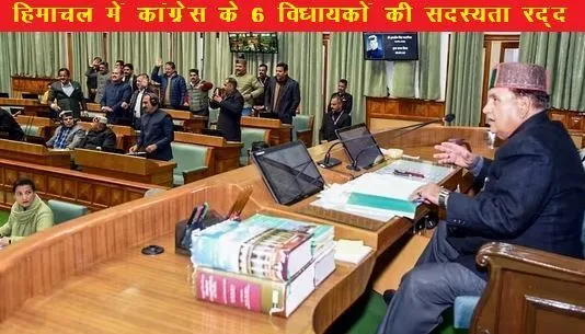 शिमला,(एआर लाइव न्यूज)। हिमाचल प्रदेश में चल रहे पॉलिटिकल ड्रामे (himachal political crisis)के बीच गुरूवार को विधानसभा स्पीकर ने कांग्रेस के 6 बागी विधायकों को अयोग्य करार दे दिया है। विधानसभा स्पीकर ने दल-बदल कानून के तहत इन 6 विधायकों की सदस्यता रद्द कर इन्हें अयोग्य करार दिया है। स्पीकर ने कहा कि विधायकों ने व्हिप का उल्लंघन किया है, ये लोकतांत्रिक मूल्यों का उल्लंघन और जनादेश का अपमान है। विधायक सुधीर शर्मा, राजेंद्र राणा, देवेंद्र भुट्टो, चैतन्य शर्मा, विधायक इंद्रदत्त लखनपाल, रवि ठाकुर की सदस्यता रद्द की गई है।