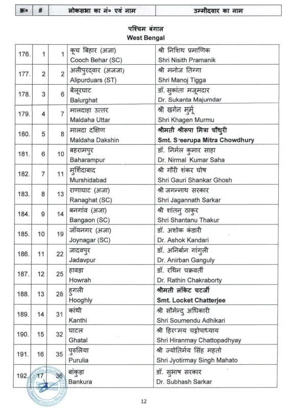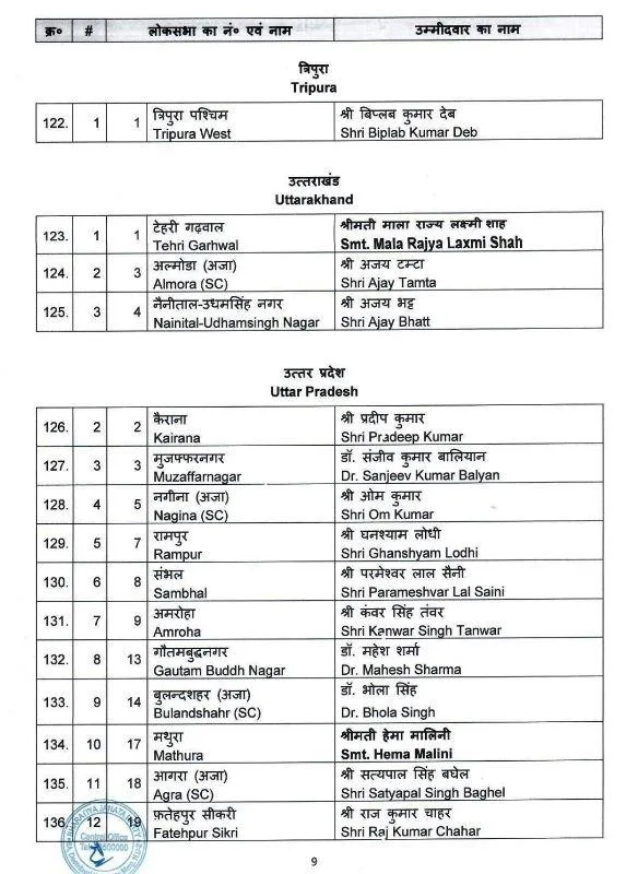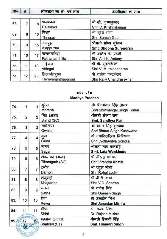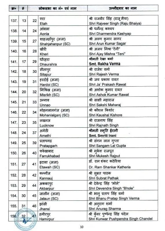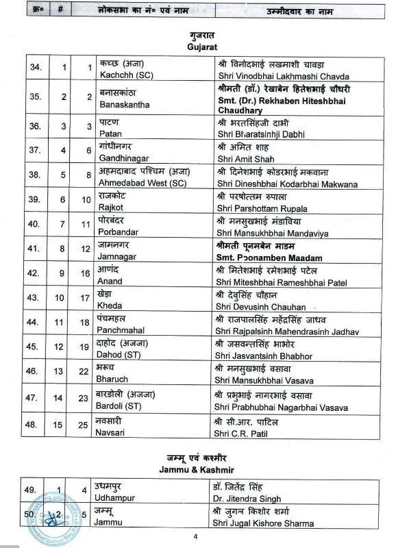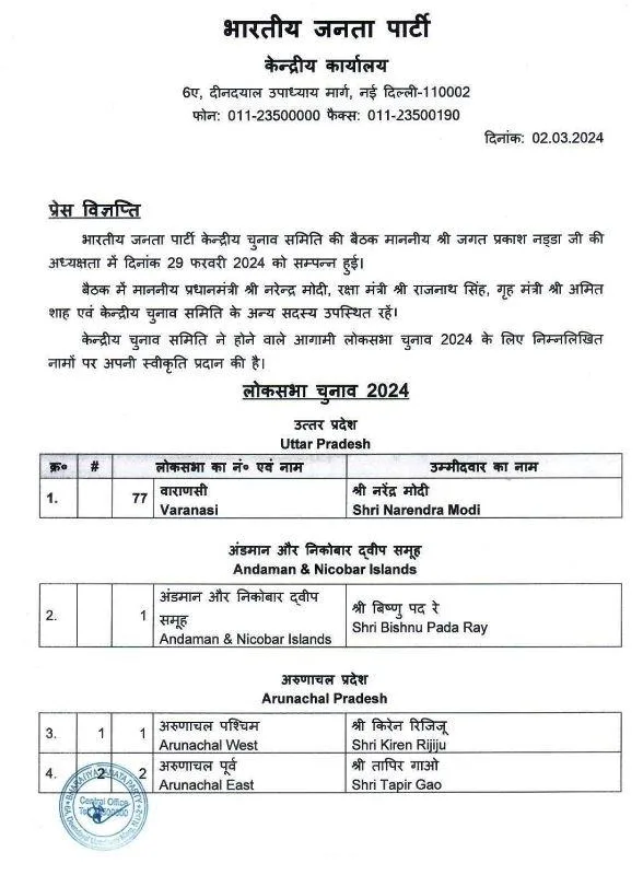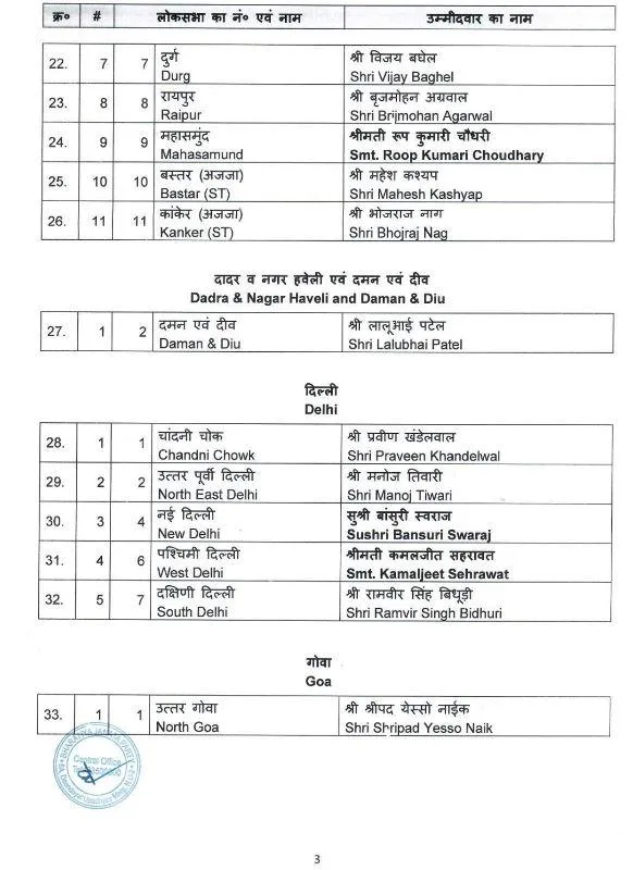 देश की 195 लोकसभा सीट और भाजपा प्रत्याशियों की सूची