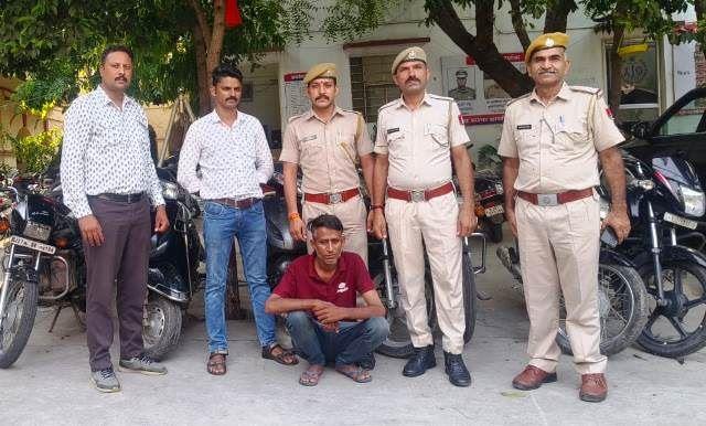 थानाधिकारी आदर्श कुमार ने बताया कि कपासन चित्तौड़गढ़ हाल बोहर वाड़ी देहली गेट उदयपुर निवासी पिंटू उर्फ रतन सिंह पुत्र भंवर सिंह राणावत को गिरफ्तार किया है। आरोपी की निशानदेही पर चोरी हुई पांच बाइक और दो स्कूटी बरामद की गयी हैं। आरोपी ने यह वाहन एमबी हॉस्पिटल सहित सुखेर, भूपालपुरा, प्रतापनगर व सुरजपोल थाना क्षेत्र के भीड़भाड़ वाले इलाकों से चोरी किए थे। आरोपी पिंटू के अन्य साथी महेन्द्र सिंह, ललीत उर्फ शोभा लाल व इंसाफ अली की तलाश की जा रही है।