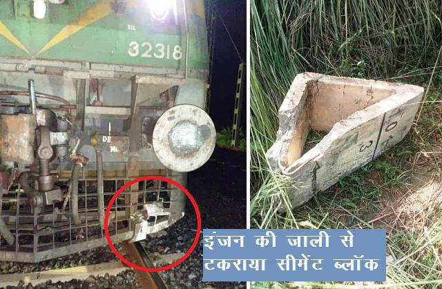 जानकारी के अनुसार घटना फुलेरा से अहमदाबाद जा रही ट्रेन के साथ हुई है। घटना रविवार रात करीब 10.30 बजे की है, जब ट्रेन अजमेर के लामाना गांव में रेलवे ट्रेक से गुजर रही थी, तभी ट्रेन के इंजन पर आगे की तरफ लगी जाली से सीमेंट ब्लॉक टकराया। हालां कि ट्रेन की टक्कर से सीमेंट ब्लॉक के टुकड़े हो गए हो गए और गनीमत रही कि ट्रेन बेपटरी नहीं हुई और आगे बढ़ गयी। इसकी जानकारी रेलवे कर्मचारी ने पुलिस को दी है और पुलिस ट्रेन को बेपटरी करने की साजिश मानकर जांच कर रही है। रेलवे ट्रेक के आस-पास एक्टिवेट रहे मोबाइल को भी पुलिस ट्रेस कर रही है।
