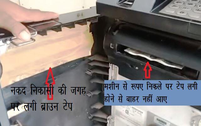 पुलिस ने बताया कि आज सुबह स्थानीय निवासी तेजपाल सिंह एक्सिस बैंक के एटीएम पर रूपए निकालने गए। एटीएम कार्ड से प्रोसेस करने के बाद उनके खाते से रूपए तो कट गए लेकिन एटीएम मशीन से रूपए नहीं निकले। मशीन में जहां से रूपए निकलते हैं, वहां उन्होंने देखा तो उन्हें अंदर की तरफ कुछ टेप जैसा लगा दिखायी दिया। जिस पर उन्होंने बैंक अधिकारियों और पुलिस को सूचना दी। पुलिस की मौजूदगी में जब एटीएम मशीन का अगला हिस्सा खोला गया तो रूपए निकलने वाली जगह पर अंदर से ब्राउन टेप चिपकी हुई मिली और तेजपाल के खाते से निकले रूपए मशीन में बाहर की तरफ दिखायी दे रहे थे।