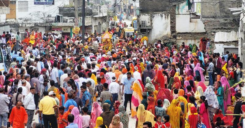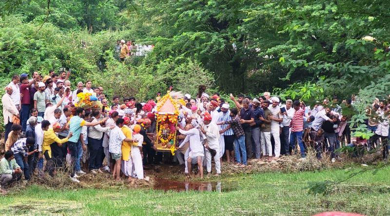 थाली मादल की थाप पर नाचते गवरी कलाकार और गौरज्या माता की शोभायात्रा जैसे जैसे आगे बढ़ती रही वैसे वैसे धर्म सैलाब उमड़ता गया। लोगों ने गौरज्या माता जी को नमन कर आशीर्वाद लिया। शाम को शुभ मुहूर्त में वर्षो से तय स्थान पर हाथी पर सवार गौरज्या माता को जल में विसर्जित किया।