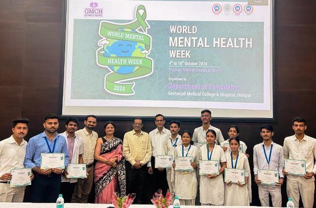 उदयपुर,(एआर लाइव न्यूज)। गीतांजली मेडिकल कॉलेज एंड हॉस्पिटल के मनोरोग विभाग ने विश्व मानसिक दिवस पर आज 10 अक्टूबर को मानसिक रोग जागरूकता सप्ताह का समापन किया। व्याख्यान कार्यक्रम में मनोरोग विभागाध्यक्ष डॉ जितेन्द्र जीनगर ने बताया कि देश में 10 प्रतिशत लोग मनोरोग से पीड़ित हैं और चिंताजनक बात यह है कि इनमें से 70-80 प्रतिशत लोग मनोचिकित्सकों के पास नहीं पहुंच पाते हैं। इससे मनोरोग से पीड़ित लोगों में नशा करने, अपराध और आत्महत्या की प्रवृति भी बढ़ी है। (World Mental Health Day in GMCH Udaipur)