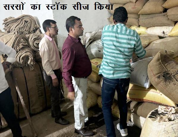 खाद्य आयुक्त इकबाल खान के निर्देशन में अति आयुक्त पंकज ओझा के नेतृत्व में प्राप्त सूचना के आधार पर किशनगढ़ रेनवाल की क़ृषि उपज मंडी में जांच की गई। नकली होने के संदेह पर 125 बोरी में भरी करीब 7650 किलो सरसों का स्टॉक मंडी अधिकारियों और पुलिस की उपस्थिति में नमूना लेकर सीज किया गया। यह सरसो प्राथमिक तौर से मिट्टी से बनी हुई प्रतीत हो रही थी।