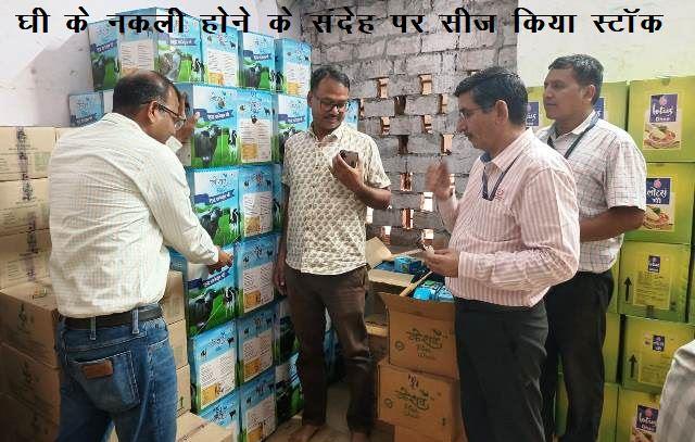 जयपुर,(एआर लाइव न्यूज)। प्रदेश में मिलावट के लिखाफ चलाए जा रहे अभियान में राज्य सरकार की सख्ती के चलते कई बड़े मामले पकड़ में आ रहे है। जयपुर में नकली का संदेह होने पर 1244 किलोग्राम घी व 7650 किलो सरसों का स्टॉक सीज करने के साथ ही 100 किलो खराब चाशनी की नष्ट करने की कार्रवाई की गई है। जिला कलेक्टर डॉ. जितेंद्र कुमार सोनी के द्वारा गठित खाद्य सुरक्षा टीम ने अति. आयुक्त खाद्य सुरक्षा पंकज ओझा के नेतृत्व में नीरज मार्केटिंग कंपनी, सूरजपोल मंडी के यहां से घी के नमूने लिए गए एवं केशव ब्रांड 1244 किलोग्राम घी सन्देह के आधार पर सीज किया गया। (shudh aahar milawat par war campaign rajasthan)