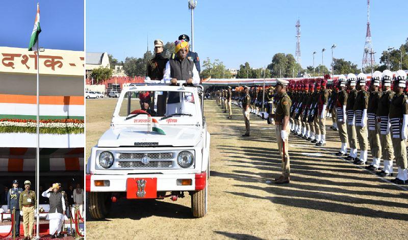 समारोह में राष्ट्रीय ध्वज तिरंगा फहराने के बाद राज्यपाल ने परेड का निरीक्षण किया और सलामी गार्ड द्वारा प्रस्तुत मार्च पास्ट की सलामी ली। राज्यपाल बागडे ने गणतंत्र दिवस पर अपने उद्बोधन में सभी को राष्ट्र और प्रदेश के सर्वांगीण विकास में अपनी महती जिम्मेदारी निभाने और आपणो राजस्थान को अग्रणी बनाने का आह्वान किया। उन्होंने देश के लिए अपना सब कुछ समर्पित करने वाले स्वतंत्रता सेनानियों और सीमाओं पर चौकस प्रहरियों को नमन करते हुए भारत को सशक्त, स्वाभिमानी और समृद्ध राष्ट्र के रूप में स्थापित करने में सभी के योगदान को महती बताया।