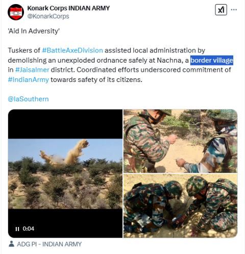unexploded bomb found in nachna jaisalmer, indian army Battle Axe Division Tuskers demolishing that bomb