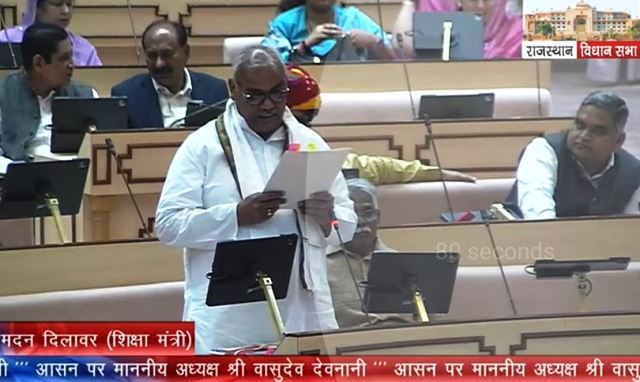 जयपुर,(एआर लाइव न्यूज)। शिक्षा मंत्री मदन दिलावर ने सोमवार को विधानसभा में पूरक प्रश्न का जवाब देते हुए आश्वस्त किया कि प्रदेश के महात्मा गांधी अंग्रेजी माध्यम विद्यालयों के संचालन के सम्बन्ध में उचित निर्णय लेकर विद्यार्थियों के हित में कार्यवाही की जाएगी। उन्होंने बताया कि इस संबंध में राज्य सरकार द्वारा मंत्रिमंडलीय उपसमिति का गठन किया गया है। समिति की रिपोर्ट के आधार पर अग्रिम कार्रवाई की जाएगी। mahatma gandhi english medium school rajasthan