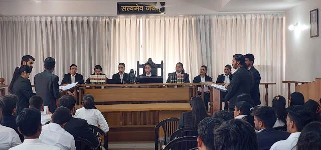 संस्था के प्रबंधन संचालक डॉ. अशोक आचार्य ने बताया कि कॉलेज में मूट कोर्ट का प्रायोगिक कार्यक्रम आयोजित किया गया। कार्यक्रम में उच्चतम न्यायालय द्वारा जोसेफ शाईन बनाम भारत संघ वाद के तथ्यों पर कॉलेज के विद्यार्थियों ने मूट कोर्ट की। जिसमें संवैधानिक पीठ में न्यायमूर्ति की भूमिका खुशबू, रूबिना, काजल, सेजल, गजाला, सोनिया और भाविका द्वारा अदा की गयी, याचिका कर्ता अधिवक्ता के रूप में चित्रा, अंकित और राकेश तथा विपक्षी अधिवक्ता के रूप में गजेन्द्र, इशरत और श्रवण ने भूमिका अदा की।