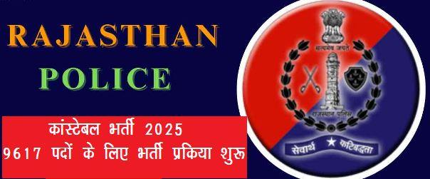 जयपुर,(एआर लाइव न्यूज)। राजस्थान पुलिस के विभिन्न जिला, यूनिट एवं बटालियन में कांस्टेबल सामान्य, चालक, बैण्ड एवं पुलिस दूरसंचार में ऑपरेटर व चालक के 9617 रिक्त पदों पर भर्ती के लिए पुलिस विभाग ने प्रवेश प्रक्रिया शुरू कर दी है। आवेदक आगामी 28 अप्रैल से 17 मई 2025 तक ऑनलाइन आवेदन कर सकते हैं। rajasthan police Constable Recruitment 2025 for 9617 posts process start: candidates can apply from 28 april