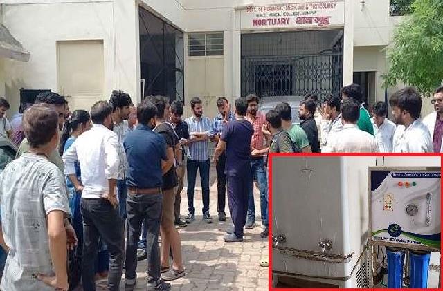 रेजीडेंट्स ने कहा इस वॉटर कूलर में करंट आने की शिकायत पहले भी कॉलेज प्रशासन को की थी, लेकिन किसी ने ध्यान नहीं दिया, आरएनटी परिसर में विरोध प्रदर्शन जारी
