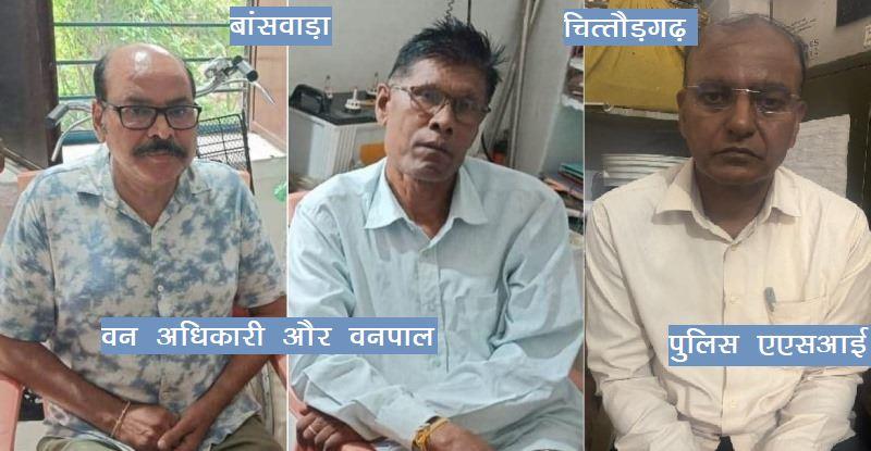 एसीबी डीआईजी प्रहलाद सिंह कृष्णिया ने बताया कि बांसवाड़ा के वन रेंज डूंगरा के क्षेत्रीय वन अधिकारी (RFO) शांतिलाल चावला और वनपाल लाडजी गरासिया को 20 हजार रूपए रिश्वत लेते गिरफ्तार किया है। वहीं चित्तौड़गढ़ के चंदेरिया पुलिस थाने के सहायक उप निरीक्षक सुभाष चन्द्र यादव को 9 हजार रूपए रिश्वत लेते रंगे हाथों गिरफ्तार किया है। एसीबी टीमें तीनों आरोपियों के घरों की तलाशी भी ले रही हैं।