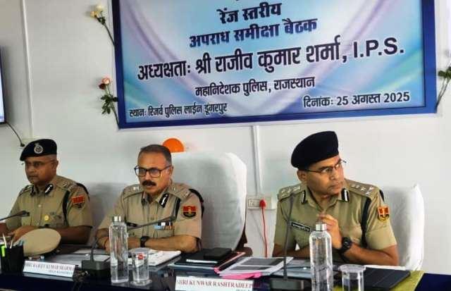 डीजीपी राजीव शर्मा ने डूंगरपुर में ली रेंज स्तरीय समीक्षा बैठक : तस्करी, साइबर अपराध और अपराधियों पर नियंत्रण कर सख्त पुलिसिंग पर फोकस