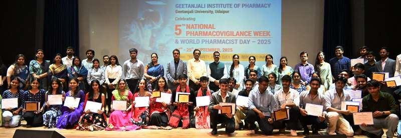 उदयपुर,(एआर लाइव न्यूज)। गीतांजलि इंस्टीट्यूट ऑफ फार्मेसी, गीतांजलि यूनिवर्सिटी में 25 सितम्बर को विश्व फार्मासिस्ट दिवस मनाया गया। इस अवसर पर कार्यक्रम की शुरुआत एक जागरूकता रैली से हुई। रैली के समापन पर विद्यार्थियों द्वारा एक प्रभावशाली नुक्कड़ नाटक प्रस्तुत किया गया और दवाओं के सुरक्षित उपयोग और फार्मासिस्ट की भूमिका के प्रति जागरूक किया गया। World Pharmacist Day celebration at Geetanjali Institute of Pharmacy