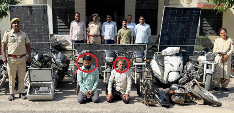 चोर गिरोह का खुलासा, 2 आरोपी गिरफ्तार : 10 बाइक और सोलर पैनल बरामद