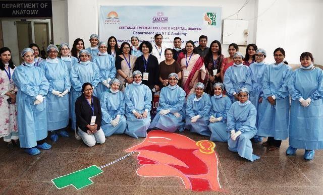 कार्यशाला का शुभारम्भ गीतांजली मेडिकल कॉलेज डीन डॉ. संगीता गुप्ता, एमएस डॉ. हरप्रीत सिंह, एडिशनल प्रिंसीपल डॉ. मनजिंदर कौर और डॉ. वीपी गोयल ने किया। गीतांजली ग्रुप एवं WAOI के संयुक्त तत्वावधान में आयोजित इस वर्कशॉप में प्रसिद्ध ईएनटी सर्जन मुंबई की डॉ. रेनुका ब्राडू, दिल्ली से WAOI अध्यक्ष डॉ. कल्पना नागपाल, भीलवाड़ा से डॉ. लीना जैन, लखनऊ से डॉ. इन्दू शुक्ला, हरियाणा से डॉ. आशिमा सक्सेना सहित उदयपुर से डॉ. हिमांशु जोशी, डॉ. आर्ची जैन एवं ईएनटी फैकल्टी मेंटर के रूप में मौजूद रहे। कार्यशाला में ईएनटी सर्जन्स को एण्डोस्कोप द्वारा नाक एवं साइनस की जटिल शल्य प्रक्रिया की तकनीक का सीधा अनुभव प्राप्त हुआ।