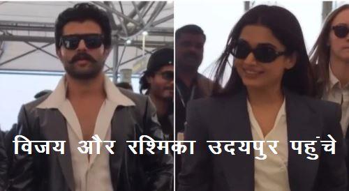 उदयपुर,(एआर लाइव न्यूज)। साउथ इंडियन फिल्मों के एक्टर देवरकोंडा और एक्टरेस रश्मिका मंदाना शादी के लिए आज सोमवार को उदयपुर पहुंच गए हैं। दोनों 26 फरवरी को उदयपुर के आईटीसी मोमेंटोज होटल में सात फेरे लेंगे। इससे पहले शादी की सभी रस्में भी यहीं निभायी जाएंगी। मेहमानों का 24 फरवरी से आना शुरू हो जाएगा। South film stars Vijay and Rashmika reach Udaipur for their wedding