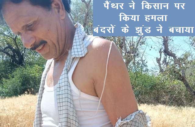 जानकारी के अनुसार लोसिंग गांव निवासी तुलसीराम पालीवाल खेत पर गेहूं की फसल की कटाई कर रहे थे। तभी झाड़ियों में छुपे पैंथर ने तुलसीराम पर हमला बोल दिया। तुलसीराम और पैंथर के बीच संघर्ष देख आस-पास मौजूद बंदरों के झुंड ने एक साथ धावा बोल पैंथर को खदेड़ दिया, बंदरों के आक्रामक रवैये को देखकर पैंथर मौके से भाग खड़ा हुआ, जिससे किसान की जान बच गई। पैंथर हमले में घायल तुलसीराम के पीठ और हाथ पर खरोंचें आई हैं। तुलसीराम की आवाज सुनकर आस-पास खेतों पर काम कर रहे ग्रामीण मौके पर पहुंचे और तुलसीराम को हॉस्पिटल लेकर गए। जहां उनका उपचार जारी है। udaipur news latest Monkeys attack on Panther to Save Farmer in gogunda udaipur