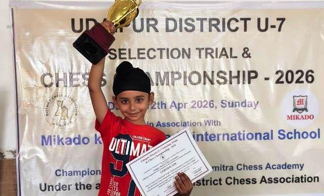 स्कूल प्राचार्य ए.जॉन बॉस्को ने बताया कि यह जिला स्तरीय अंडर-7 शतरंज प्रतियोगिता 12 अप्रैल को हुई थी। जिसमें चार चक्रों की कड़ी प्रतिस्पर्धा में सभी छात्रों ने एक-दूसरे को अच्छी टक्कर देते हुए शह और मात दी। रमणीक ने उसे चुनौती दे रहे छात्रों को शतरंज की बिसात पर मात दी और चैंपियन का खिताब अपने नाम कर लिया। रमणीक अब राज्य स्तरीय अंडर-7 प्रतियोगिता में उदयपुर जिले का प्रतिनिधित्व करेंगे।