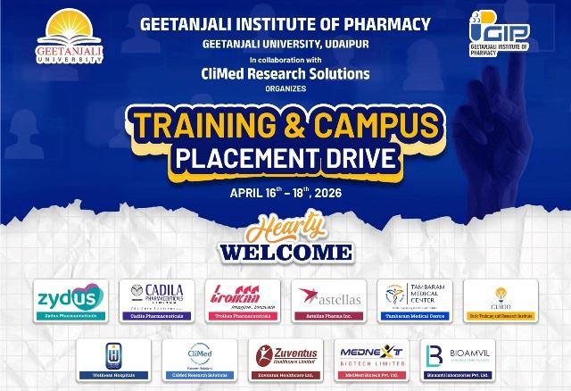 udaipur hospital news Geetanjali University organising National-Level Training and Campus Placement Drive from 16th april for pharmacy students