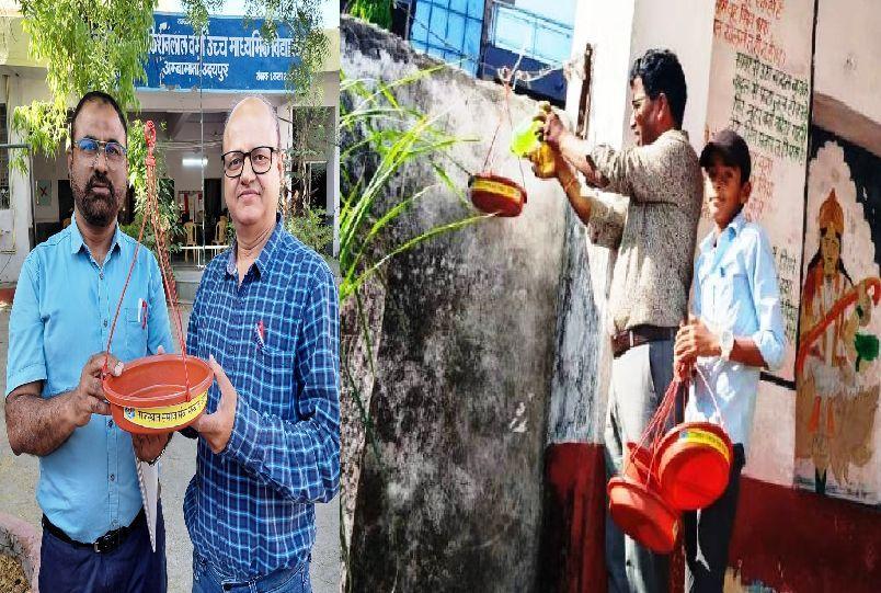 शहर से करीब 30 किलोमीटर दूर स्थित महात्मा गांधी राजकीय विद्यालय वास (भूताला) में स्कूल के प्रिंसिपल हीरसिंह के नेतृत्व में स्कूली बच्चों ने स्कूल परिसर में परिंडे लगाए। बच्चों ने नियमित पानी भरने की जिम्मेदारी भी ली है। संस्थान अध्यक्ष देवेंद्र शर्मा ने बताया कि शहर के अंबामाता क्षेत्र में स्थित राजकीय मास्टर किशनलाल वर्मा उच्च माध्यमिक विद्यालय में गुरुजनों ने पक्षियों के लिए परिंडे लगाए। स्कूल स्टाफ ने संस्थान के इस प्रयास की सराहना करते हुए कहा कि गर्मी के इस दौर में परिंडे लगाने की सेवा सकारात्मक पहल है। parinda distribution campaign udaipur | udaipur news parinda vitran | parinda abhiyan mahatma gandhi government school vas bhutala udaipur